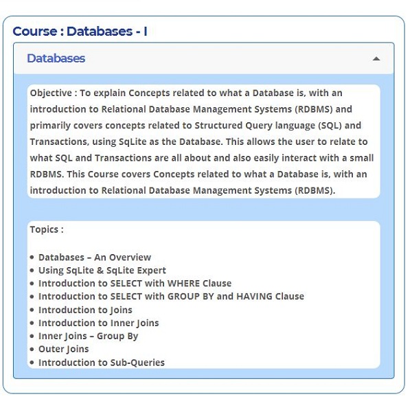 This Course covers Concepts related to what a Database is, with an introduction to Relational Database Management Systems (RDBMS).